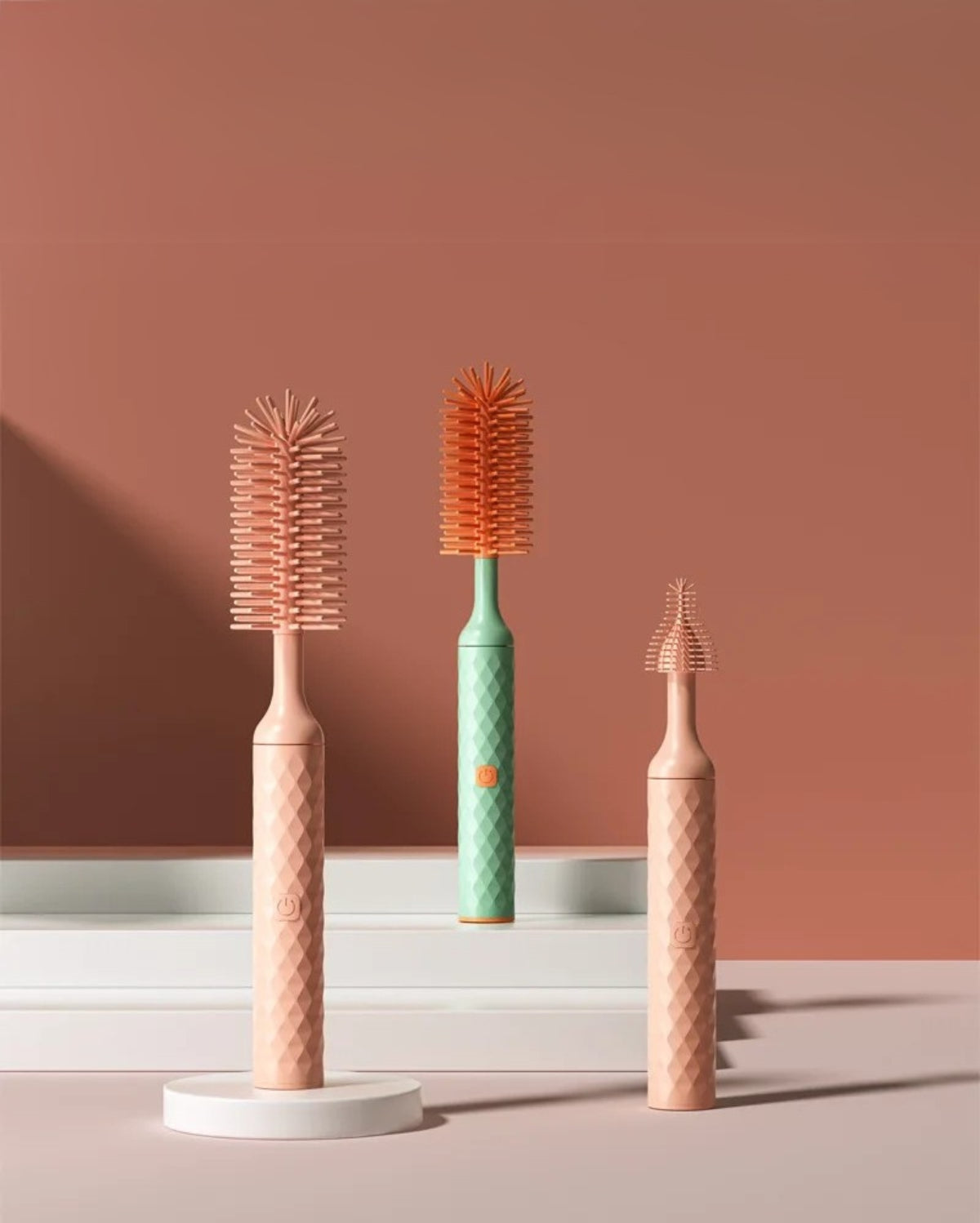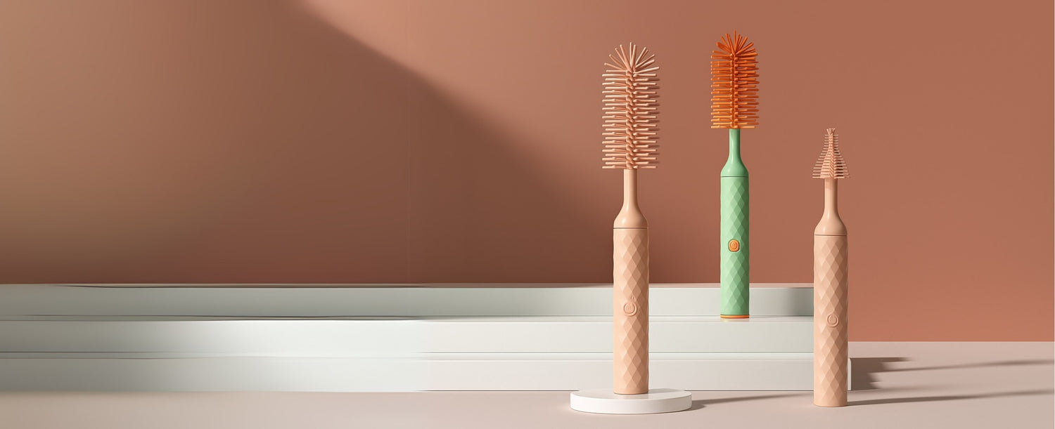 Three snap-on heads spin 360° to banish milk residue in seconds—perfect for busy parents who need a spotless bottle every time.